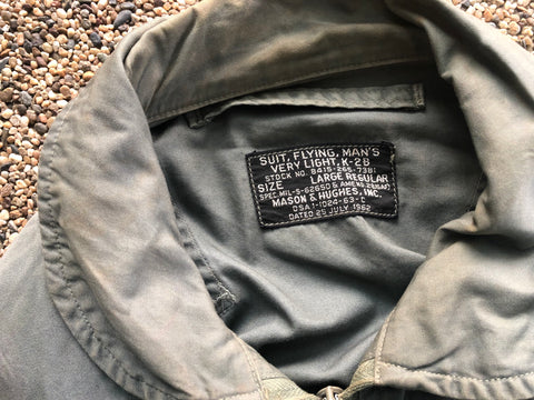 Condition of all items is excellent with minor wear and everything is original including zips and knit. Size of jacket and flight suit are both large and cap is about 7-1/8 although tag says larger.